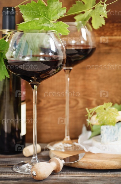 Натюрморт с красным вином и сыром