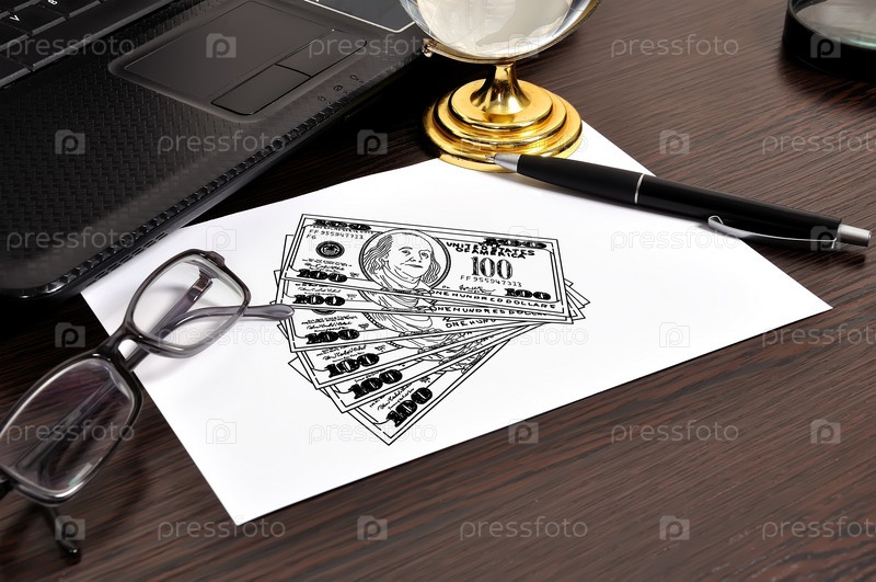 Нарисованные доллары на рабочем месте