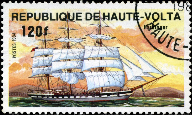 Почтовая марка, республика Верхняя Вольта, 1984 год, корабль «Предвестник»