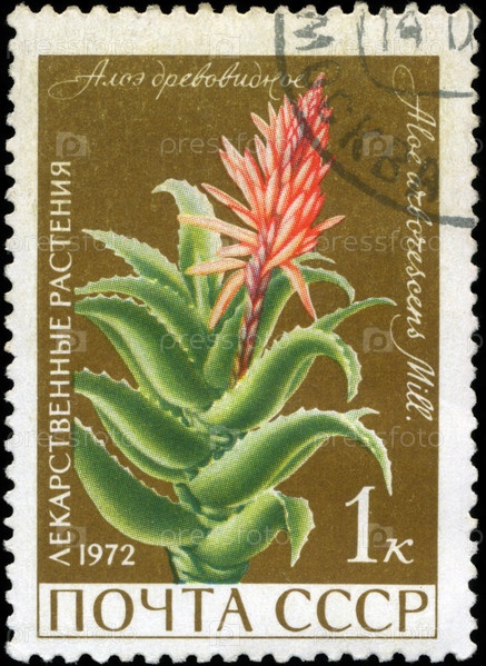 Почтовая марка СССР, 1972 год, алоэ, серия посвящена лекарственным растениям