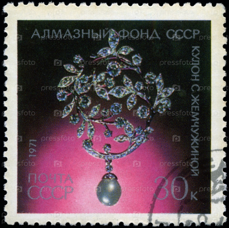 Почтовая марка СССР, 1971 год, кулон с жемчугом от Алмазного фонда СССР