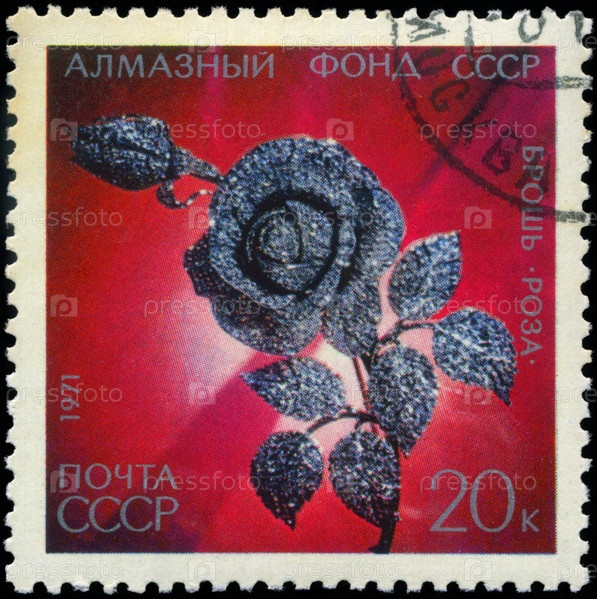 Почтовая марка СССР, 1971 год, брошь - роза из Алмазного фонда СССР