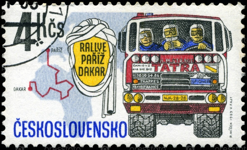 Почтовая марка, Чехословакия, 1989 год, ралли Париж - Дакар