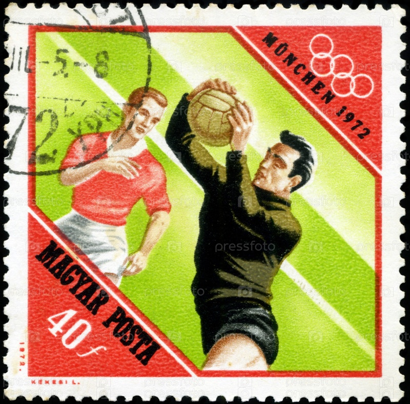 Венгерская почтовая марка 1972 года, футбол и Олимпийские кольца, серия «Олимпийские игры в Мюнхене, 1972