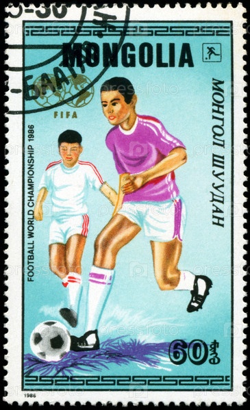 Монголия, почтовая марка, 1986 год, чемпионат мира по футболу