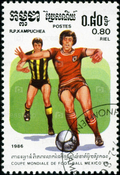 Камбоджа, почтовая марка, 1986 год, чемпионат мира по футболу в Мексике