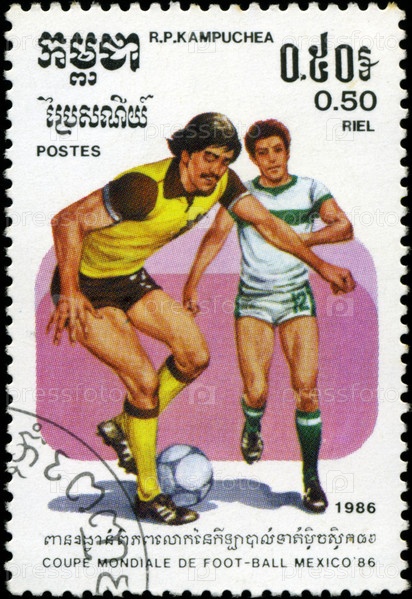 Камбоджа, почтовая марка, 1986 год, чемпионат мира по футболу в Мексике