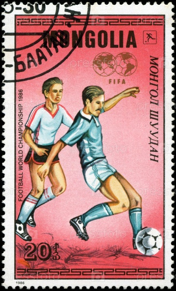 Монголия, почтовая марка, 1986 год, чемпионат мира по футболу