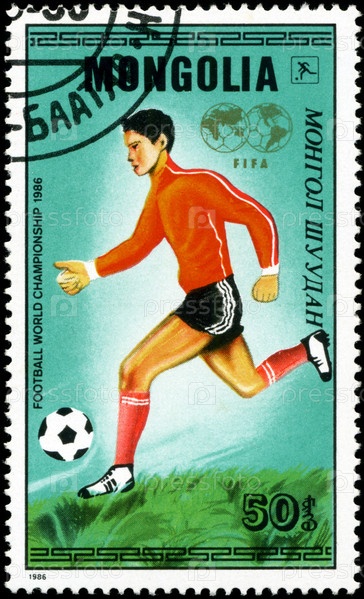 Монголия, почтовая марка, 1986 год, кубок мира по футболу