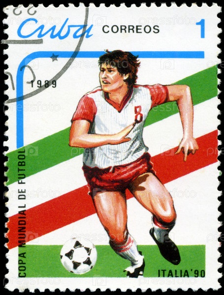 Кубинская почтовая марка 1989 года. чемпионат мира по футболу 1989 года в Италии