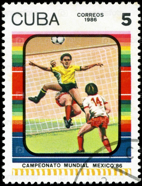 Кубинская почтовая марка 1985 года, чемпионат мира по футболу в Мексике 1986 года