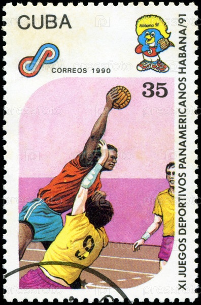 Кубинская почтовая марка 1990 года, панамериканские игры в Гаване, Куба, гандбол
