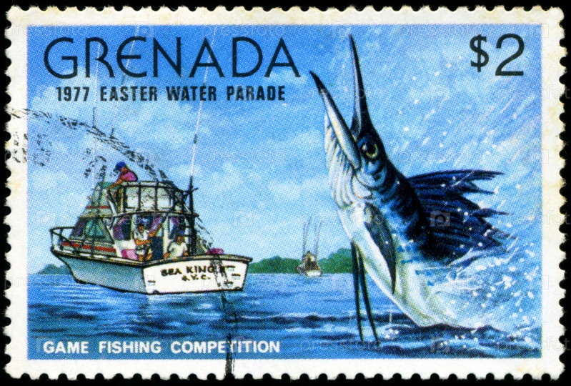 Гренада, почтовая марка 1977 года, Пасхальный парад и соревнование по рыбной ловле