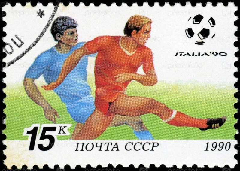 Почтовая марка СССР 1990 года, кубок мира по футболу в Италии