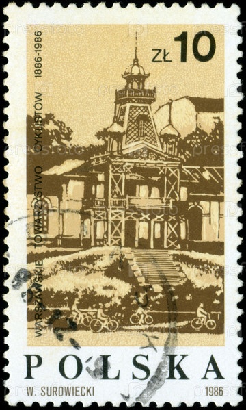 Польская почтовая марка 1986 года, посвященная 100-летию Варшавского общества велосипедистов