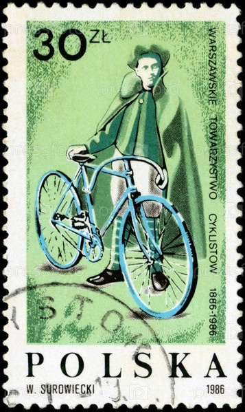 Польская почтовая марка 1986 года, посвященная 100-летию Варшавского общества велосипедистов