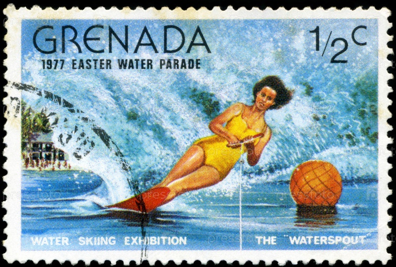 Гренада, почтовая марка 1977 года, пасхальный парад и лыжный спорт