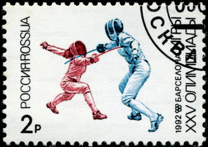 Россия, почтовая марка 1992 года, Олимпийские игры, фехтовальщики