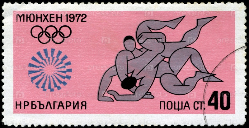 Болгарская почтовая марка 1972 года, название серии «Летние Олимпийские игры в Мюнхене, 1972», борьба