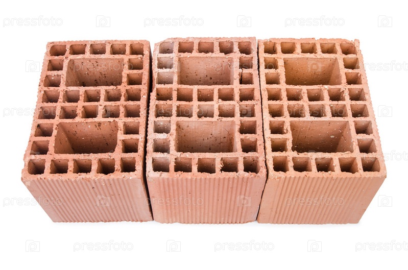 Стопка глиняного кирпича, изолированная на белом