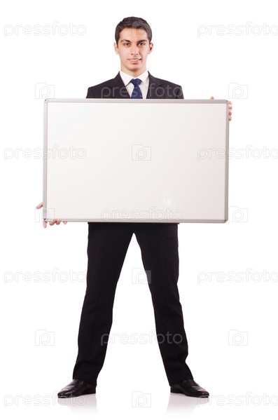 Молодой бизнесмен с пустым плакатом