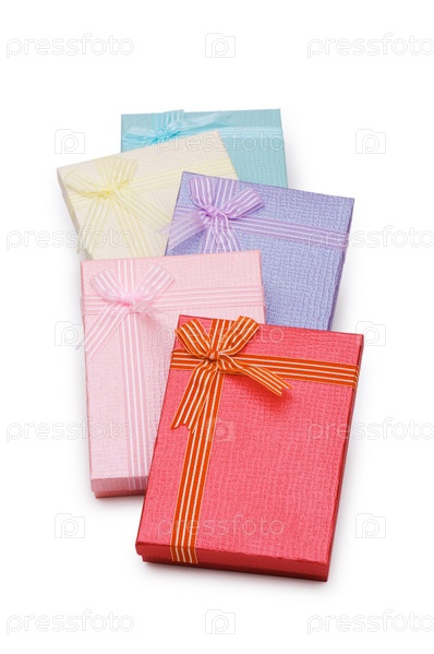 Подарочные коробки на белом фоне