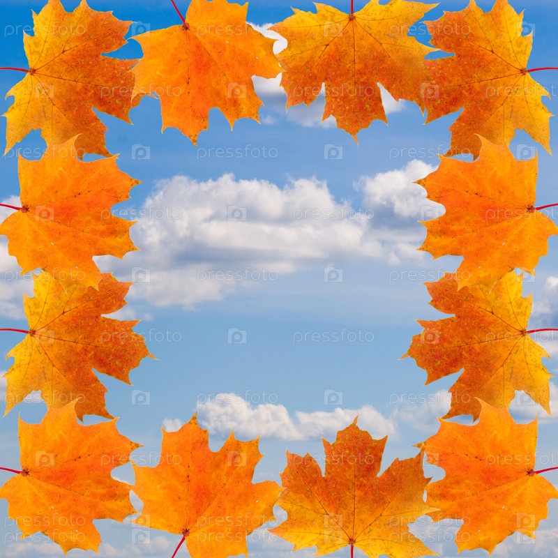 Рамка из осенних листьев на фоне неба
