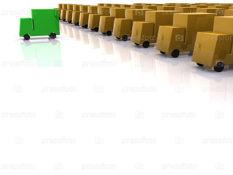 Зеленый грузовик идет впереди остальных