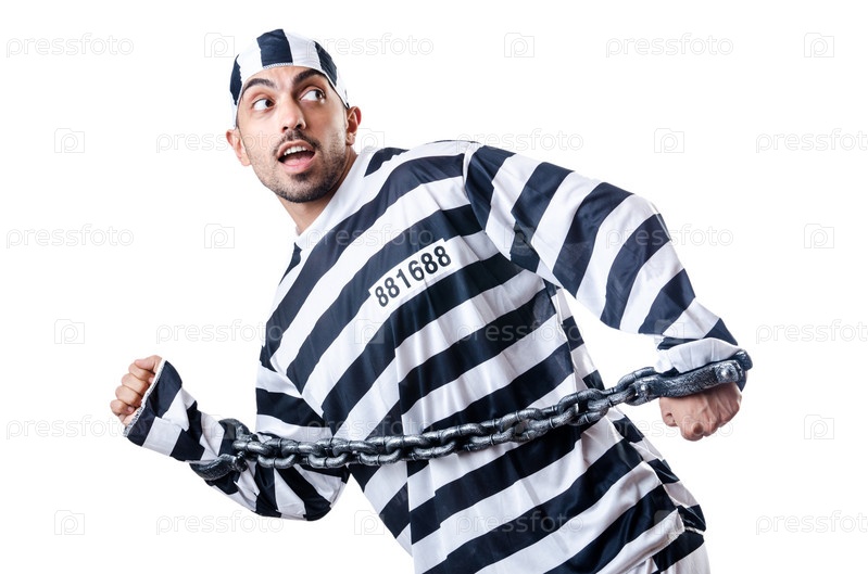 Осужденный преступник в полосатой форме
