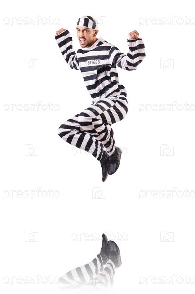 Осужденный преступник в полосатой форме