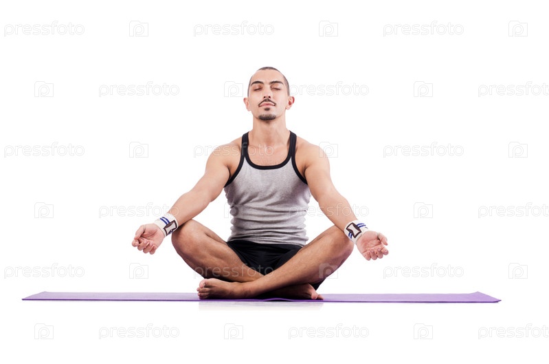 Мужчина делает упражнения на белом фоне
