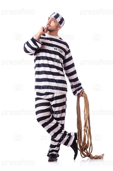 Осужденный преступник в полосатой одежде