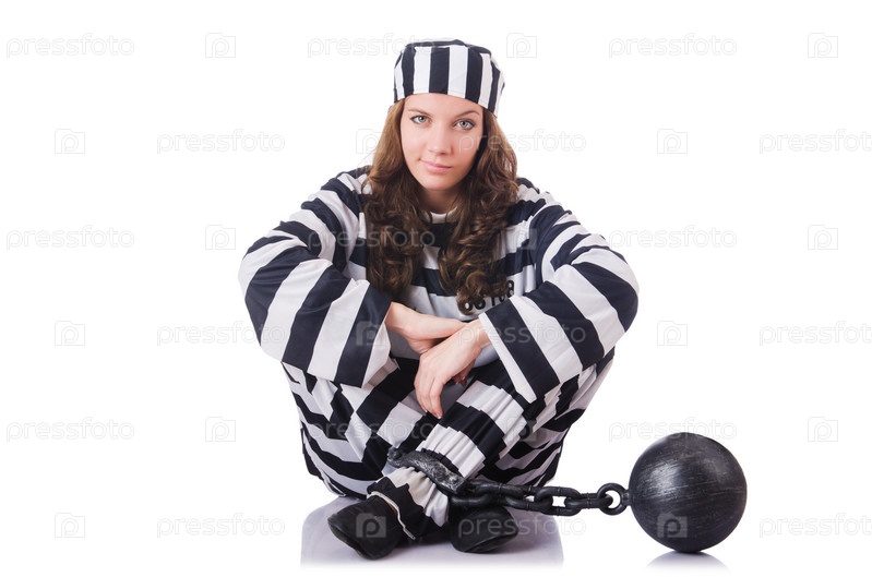 Осужденный преступник в полосатой форме