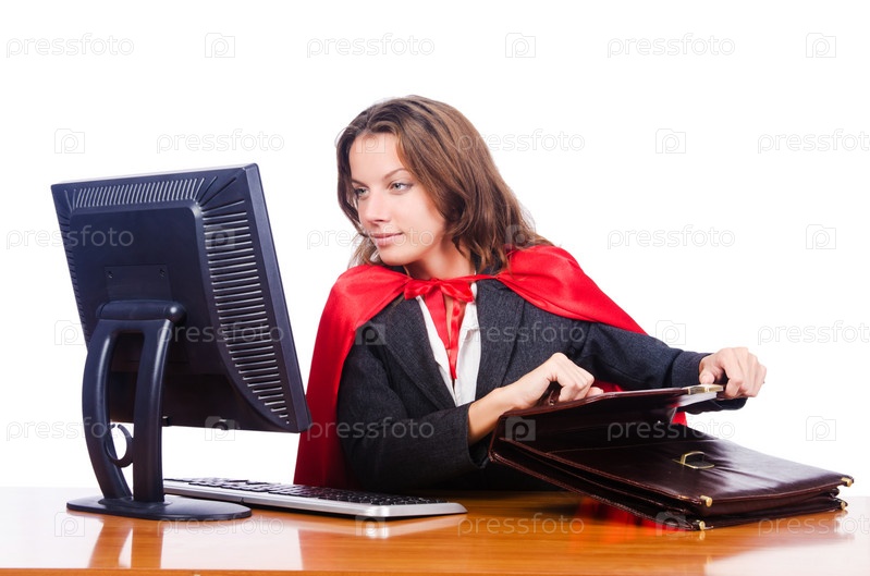 Суперженщина работает в офисе