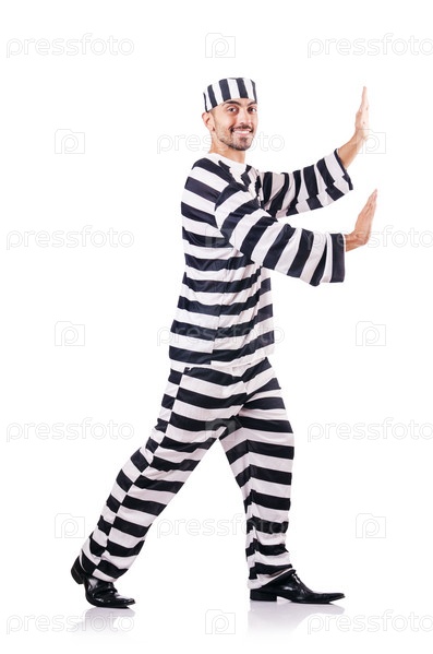 Осужденный преступник в полосатой одежде