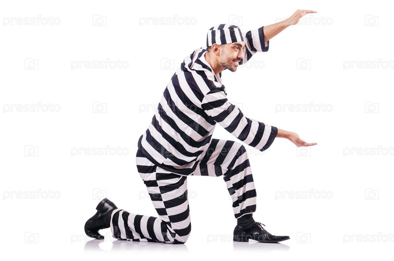 Осужденный преступник в полосатой одежде