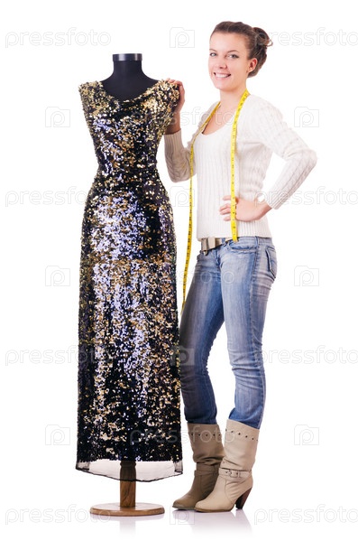 Женщина-портной работает над платьем