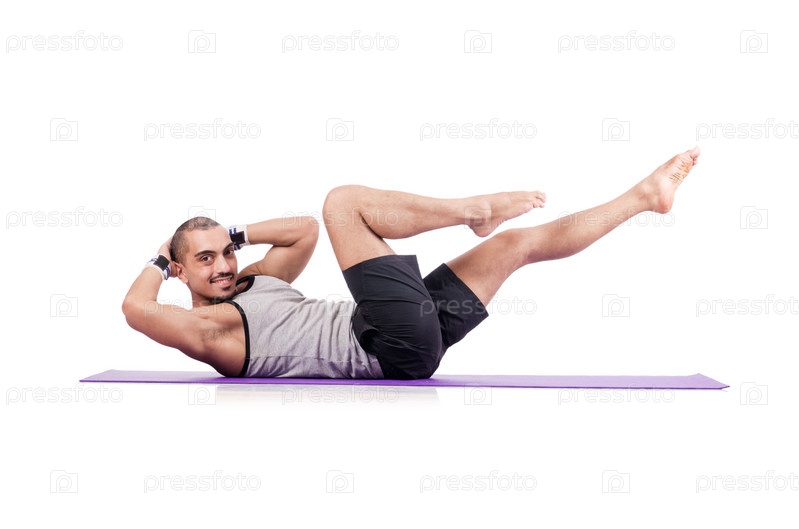 Мужчина делает упражнения на белом фоне