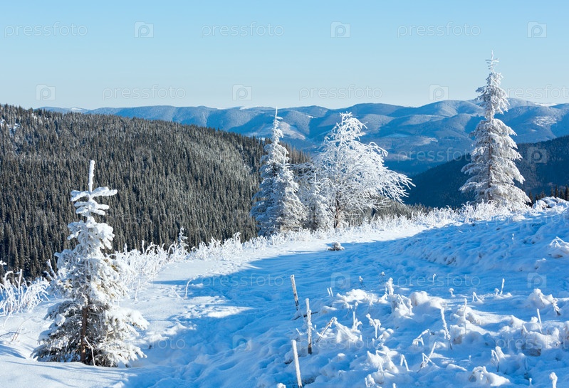 Утренний зимний горный пейзаж