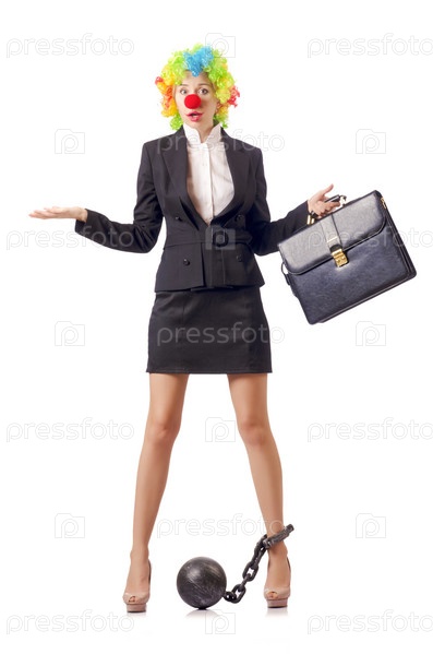 Женщина-клоун в деловом костюме