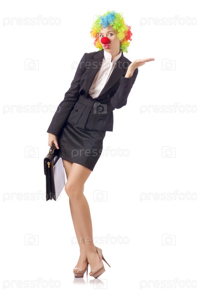 Женщина-клоун в деловом костюме