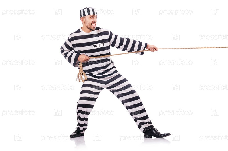 Осужденный преступник в полосатой форме