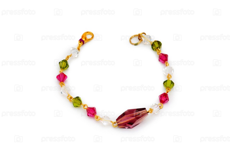 Женский разноцветный браслет на белом фоне