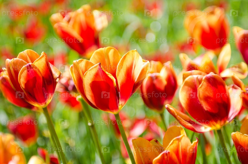 Поле тюльпанов в яркий летний день