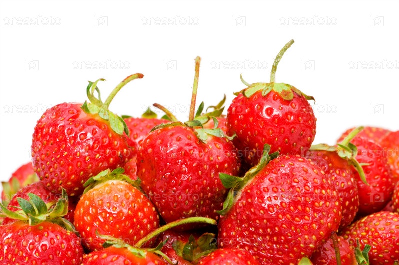Спелая земляника крупным планом на белом фоне