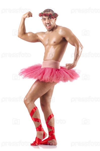 Мужчина в балетной пачке на белом фоне
