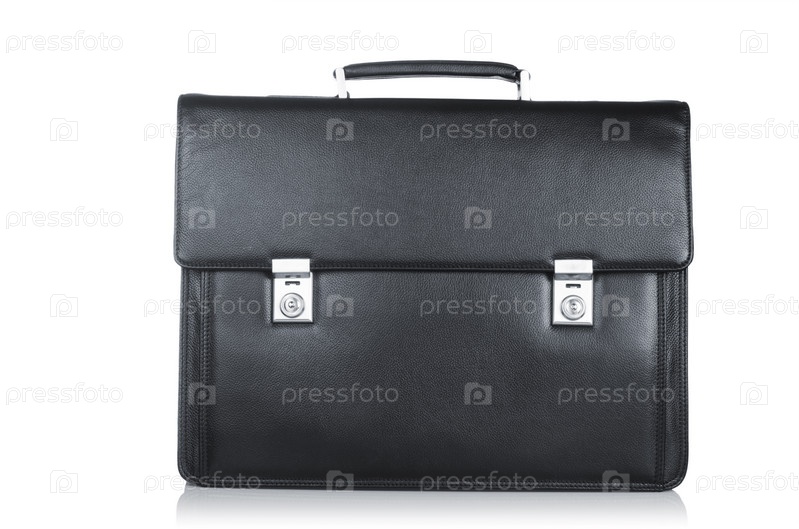 Черный кожаный портфель, изолированный на белом фоне