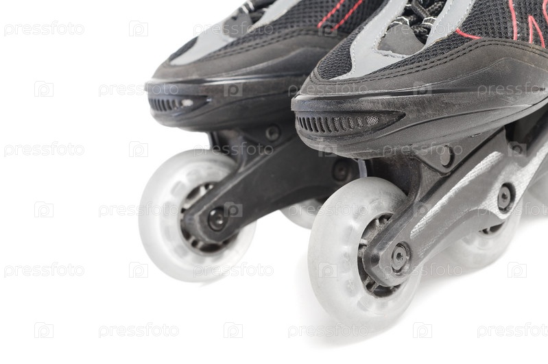 Роликовые коньки крупным планом на белом фоне