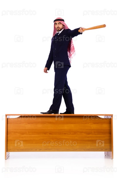 Арабский бизнесмен бьет бейсбольной битой