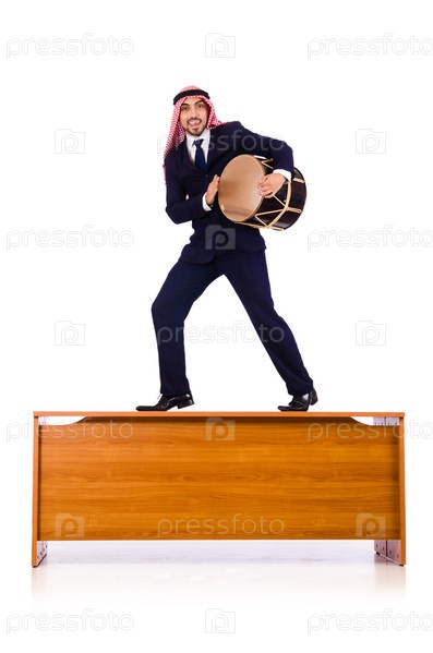 Арабский бизнесмен играет на барабане на столе